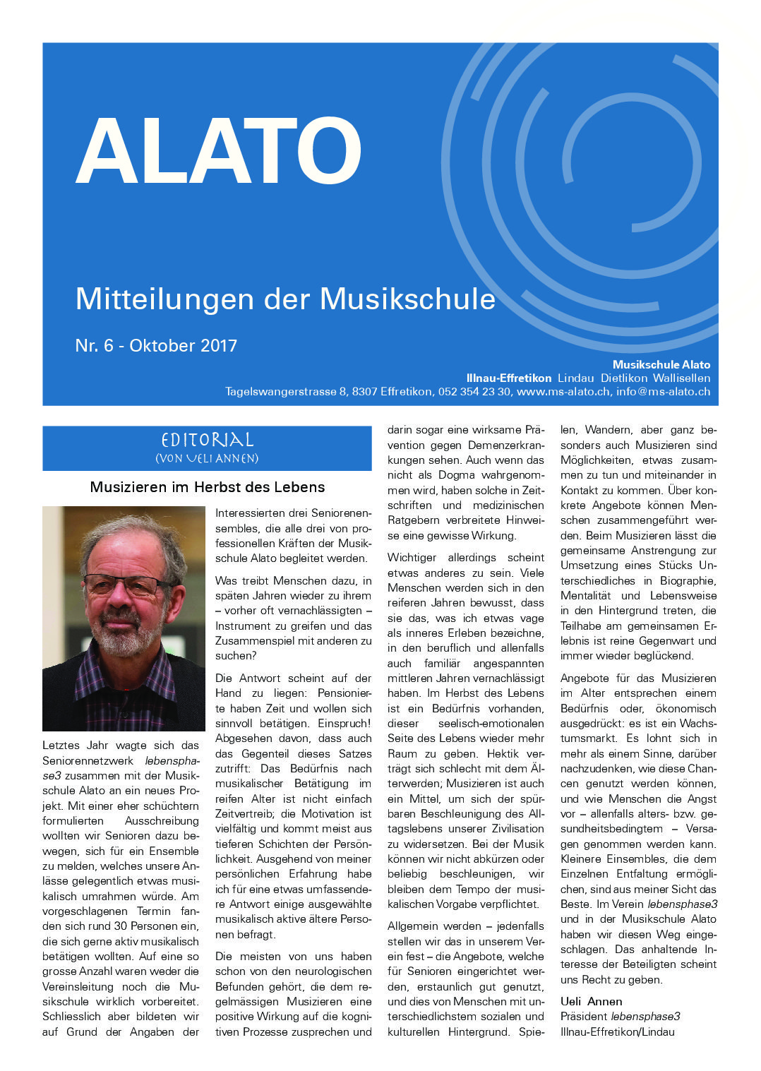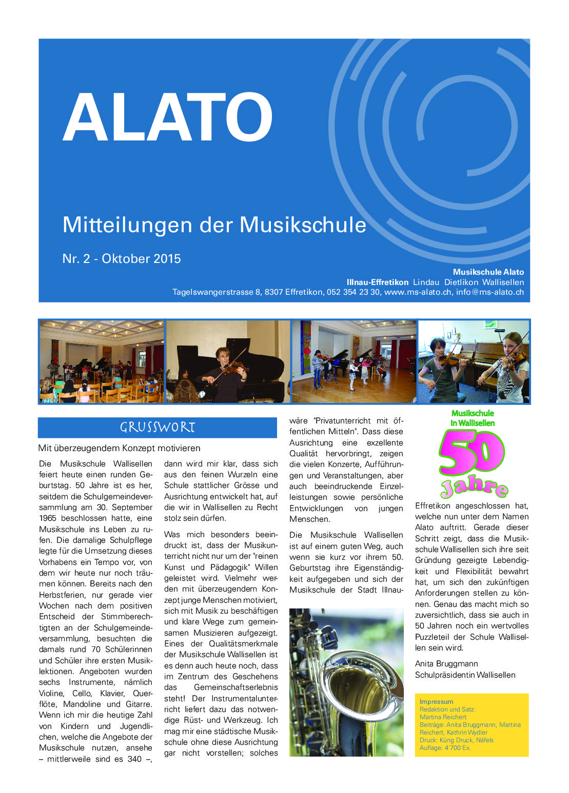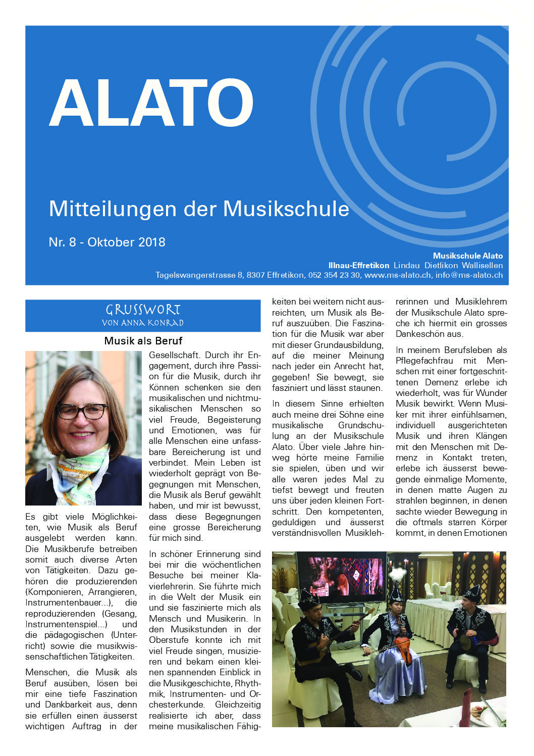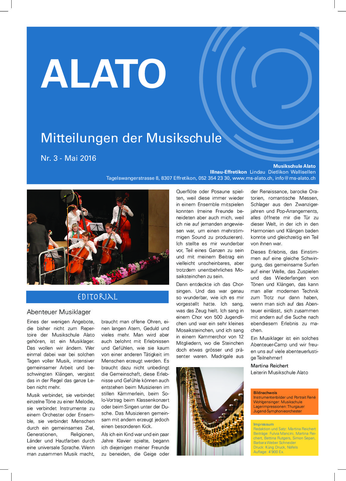 Etwa halbjährlich werden Mitteilungen aus der Musikschule an unsere Schülerinnen und Schüler verschickt, und die Volksschüler der Gemeinden Effretikon, Lindau, Dietlikon und Wallisellen erhalten unser “ALATO” über die Schulhauspost. Die pdf der Publikationen können Sie hier zum Lesen herunterladen. Gerne schicken wir Ihnen auch ein Exemplar der jeweils neuesten Ausgabe zu, eine Mail an info@ms-alato.ch genügt.